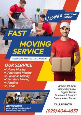 Get a free quote today and save on your move. We provide up to 10 free large boxes per customer. Mention Kervon for an extra 10% discount. Available 24/7 by call or text at 929-404-4557. Our moving team is professional, reliable, and fully licensed and insured. We offer free disassembly, reassembly, wrapping, and padding. No job is too big or small, with trucks equipped for local and long-distance moves. Serving multiple NYC neighborhoods with punctual, well-trained movers.