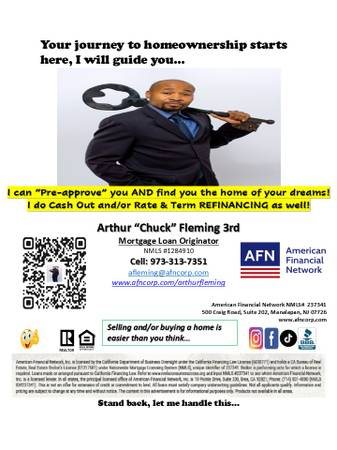 I am Arthur "Chuck" Fleming 3rd, a Mortgage Loan Originator and Licensed Real Estate Agent in New Jersey. I specialize in helping clients become homeowners or refinance their mortgages to lower rates or access cash equity. I offer a streamlined process combining loan and real estate expertise. Services include 203(k) loans, conventional, FHA, VA, USDA, jumbo loans, refinancing, construction loans, bank statement loans, DSCR loans for commercial and multi-family properties, fixed and adjustable rates, reverse mortgages, and more. Contact me for a free consultation.